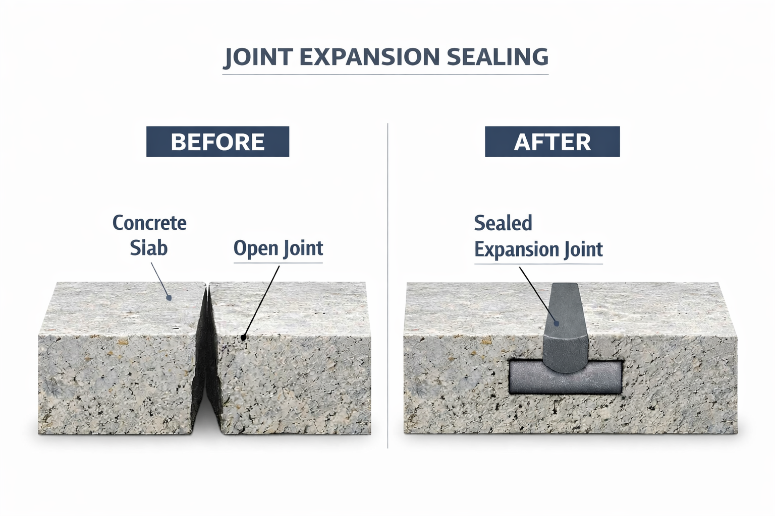 Expansion joints are designed to allow concrete to expand and contract with temperature changes. However, without proper sealing, these joints become entry points for moisture, dirt, and debris.